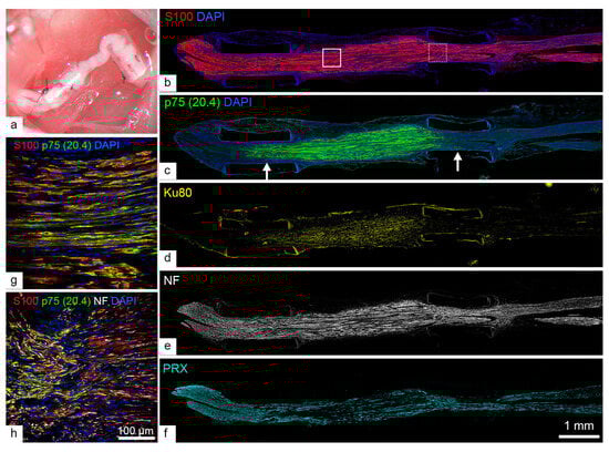 - Weiss, T.; Taschner-Mandl, S.; Bileck, A.; Slany, A.; Kromp, F.; Rifatbegovic, F.; Frech, C.; Windhager, R.; Kitzinger, H.; Tzou, C.H.; et al. Proteomics and Transcriptomics of Peripheral Nerve Tissue and Cells Unravel New Aspects of the Human Schwann Cell Repair Phenotype. Glia 2016, 64, 2133–2153. [Google Scholar] [CrossRef]