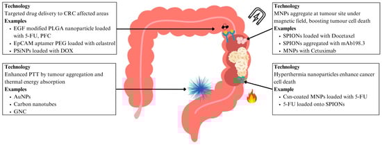 - Viswanath, B.; Kim, S.; Lee, K. Recent insights into nanotechnology development for detection and treatment of colorectal cancer. Int. J. Nanomed. 2016, 11, 2491–2504. [Google Scholar] [CrossRef]