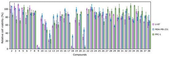 - Balandis, B.; Mickevičius, V.; Petrikaitė, V. Exploration of Benzenesulfonamide-Bearing Imidazole Derivatives Activity in Triple-Negative Breast Cancer and Melanoma 2D and 3D Cell Cultures. Pharmaceuticals 2021, 14, 1158. [Google Scholar] [CrossRef]