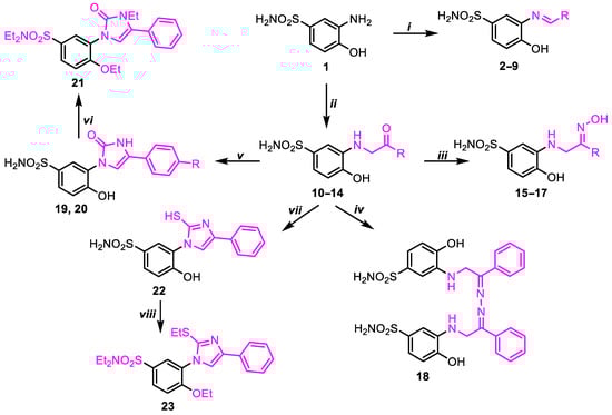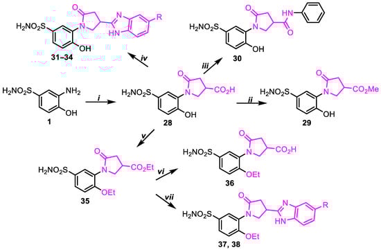 - Balandis, B.; Ivanauskaitė, G.; Smirnovienė, J.; Kantminienė, K.; Matulis, D.; Mickevičius, V.; Zubrienė, A. Synthesis and Structure–Affinity Relationship of Chlorinated Pyrrolidinone-Bearing Benzenesulfonamides as Human Carbonic Anhydrase Inhibitors. Bioorg. Chem. 2020, 97, 103658. [Google Scholar] [CrossRef]