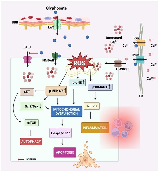 - Liu, T.; Zheng, F.; Liu, L.; Zhou, H.; Shen, T.; Li, Y.; Zhang, W. Paraquat disrupts the blood–brain barrier by increasing IL-6 expression and oxidative stress through the activation of PI3K/AKT signaling pathway. Open Med. 2024, 19, 20241020. [Google Scholar] [CrossRef]