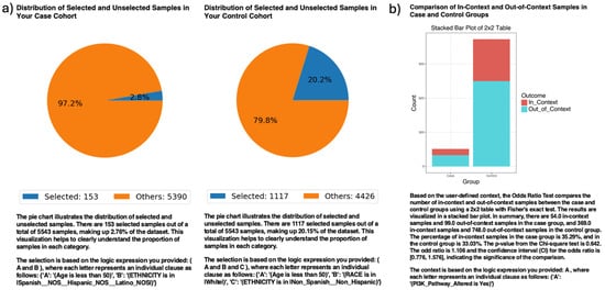 Ancestry was defined and integrated into AI-HOPE-PI3K based on the harmonized race/ethnicity variables provided within the cBioPortal datasets, following the methodology described in our previous study []. These variables, which reflect self-reported or institutionally annotated ancestry designations, were curated during preprocessing and incorporated into the natural language querying system to enable population-specific stratification. The AI-HOPE-PI3K platform recognizes and processes user queries referencing ancestry groups, such as “Hispanic/Latino patients” (Figure S2), to automate cohort filtering and subgroup analyses. This feature allows for contextualized exploration of genomic and clinical trends across diverse populations and supports the platform’s broader aim of advancing equity in precision oncology.