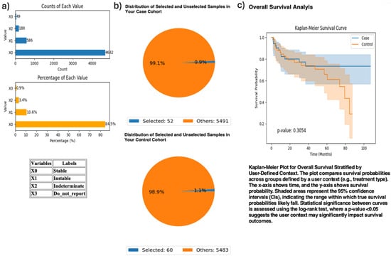 All statistical analyses reported in this study—including Kaplan–Meier survival analyses and odds ratio testing—were based on the methodology described in our previous publication analyzing PI3K alterations in CRC [] and were implemented within the AI-HOPE-PI3K platform to support functional validation of the system. Given the validation-focused nature of this study, corrections for multiple comparisons and multivariate analyses were not applied. However, we recognize that these approaches are essential in broader hypothesis-testing contexts to control for type I error and account for confounding factors. Future versions of AI-HOPE-PI3K will include support for multiple testing correction methods (e.g., Bonferroni, FDR) and multivariate regression models, including Cox proportional hazards and logistic regression, to enhance the analytical rigor and generalizability of findings.