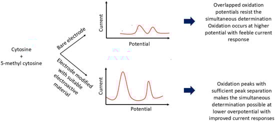 Figure 1 schematically represents the electrochemical behavior of C and 5-mC at both bare and modified electrodes.