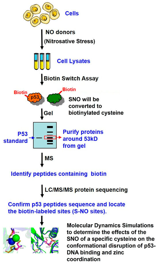 The experimental workflow and study design used to confirm p53 SNO under nitrosative stress and to identify SNO-modified sites via mass spectrometry are summarized in Figure 6.