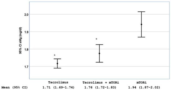 - Sánchez-Fructuoso, A.I.; Santín Cantero, J.M.; Pérez Flores, I.; Valero San Cecilio, R.; Calvo Romero, N.; Vilalta Casas, R. Changes in magnesium and potassium homeostasis after conversion from a calcineurin inhibitor regimen to an mTOR inhibitor-based regimen. Transplant. Proc. 2010, 42, 3047–3049. [Google Scholar] [CrossRef] [PubMed]