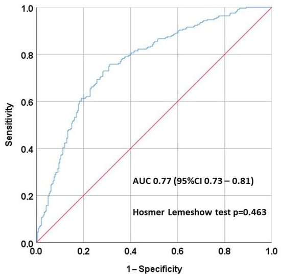 | Serum calcium * ≤10 mg/dL >10 mg/dL (p75) | 1.75 (1.11–2.78) 1 | 0.017 |