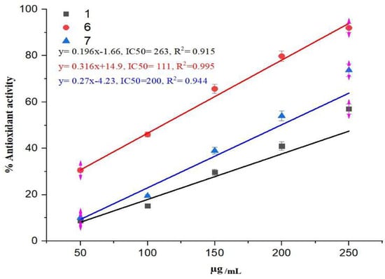 The antioxidant activity of thiazolidinone derivatives 1, 6, and 7.