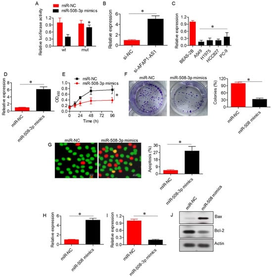 2.3. LncRNA AFAP1-AS1 Acts via Sponging of miR-508-3p