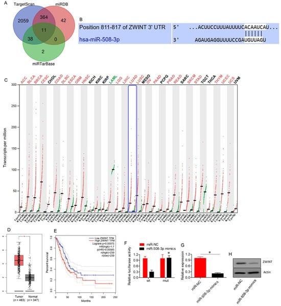 2.4. ZWINT Acts as a Target of miR-508-3p