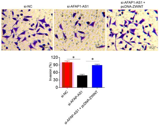 2.6. Effects of AFAP1-AS1 Silencing on A549 Cell Invasion