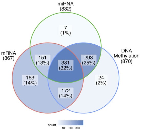 2.5. Detection of miRNA and DNA Methylation Loci Significant in the Context of Predicting mRNA Expression Levels