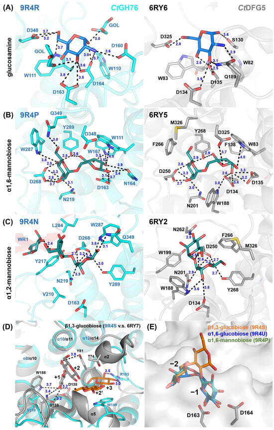 2.5. Comparison with Alphafold 3-Mediated CtGH76–Glycan Complex Models
