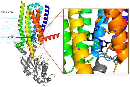 GPCRs are involved in a wide range of biological processes due to their ability to perceive a signal from outside the cell and transmit its information inside the cell. Their roles involve the mediation of sensory information, such as light perception, taste, olfaction, pheromone sensation, the mediation of neuropathic pain, or endocrine regulation []. Because of their importance in these biological events, the structure of GPCRs has long been studied for pharmaceutical purposes. Approximately 40% of the drugs approved by the Food and Drug Administration (FDA) in 2020 target GPCRs, the majority of which are class A GPCRs (96%) [].