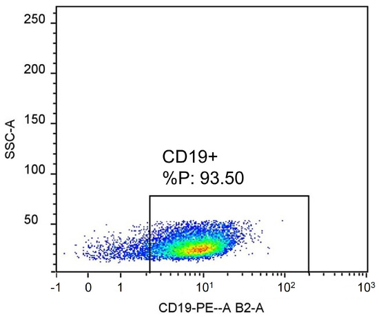 Flow cytometry results indicate that CD19+ cells can be isolated with a high purification rate from tonsil tissue, with 93.50% of the purified cells being positive for the CD19+ antibody (Figure 1).