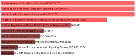 To investigate the functional roles of the predicted miRNA target genes, Gene Ontology (GO) enrichment analysis was conducted using the Enrichr platform, focusing on the GO Biological Process 2021 database. The analysis revealed a significant overrepresentation of terms associated with cell cycle regulation, mitotic control, and apoptotic signaling pathways (Figure 5; Table 6).