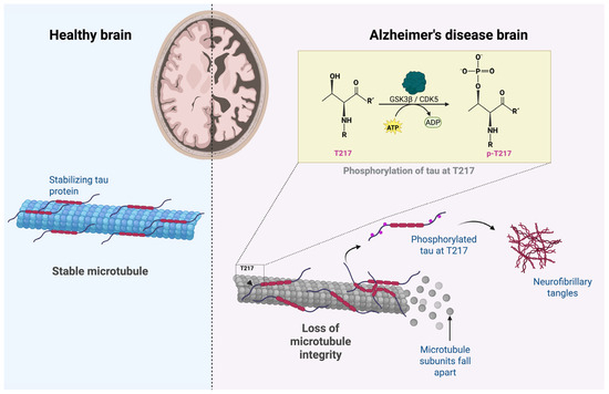 - Wang, X.; Liu, Q.; Li, X.G.; Zhou, Q.Z.; Wu, D.Q.; Li, S.H.; Liu, Y.C.; Wang, J.Z. T217-Phosphorylation Exacerbates Tau Pathologies and Tau-Induced Cognitive Impairment. J. Alzheimer’s Dis. 2021, 81, 1403–1418. [Google Scholar] [CrossRef]