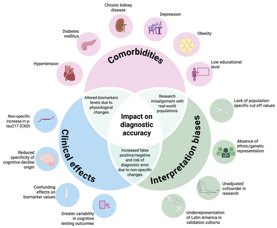 - Olvera-Rojas, M.; Sewell, K.R.; Karikari, T.K.; Huang, H.; Oberlin, L.E.; Zeng, X.; Morris, J.K.; Collins, A.M.; Drake, J.A.; Sutton, B.P.; et al. Influence of Medical Conditions on the Diagnostic Accuracy of Plasma P-Tau217 and p-Tau217/Aβ42. Alzheimer’s Dement. 2025, 21, e14430. [Google Scholar] [CrossRef]