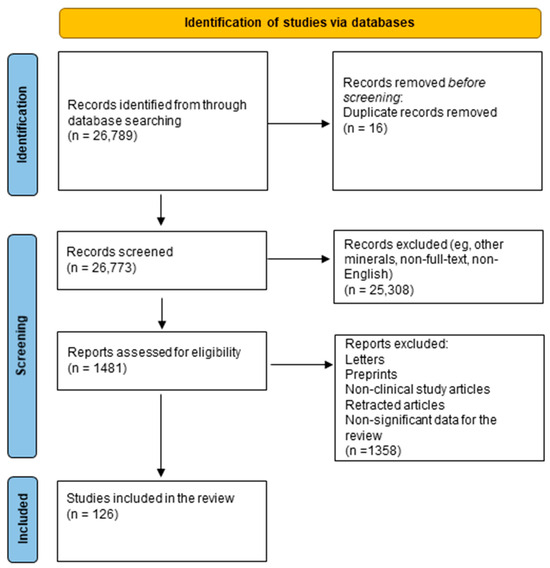 - Wang, P.; Chen, B.; Han, Y.; Li, J.; Cao, D.; Chen, Z.; Li, J.; Ran, B.; Yang, J.; Wang, R.; et al. Selenium intake and multiple health-related outcomes: An umbrella review of meta-analyses. Front. Nutr. 2023, 10, 1263853. [Google Scholar] [CrossRef]