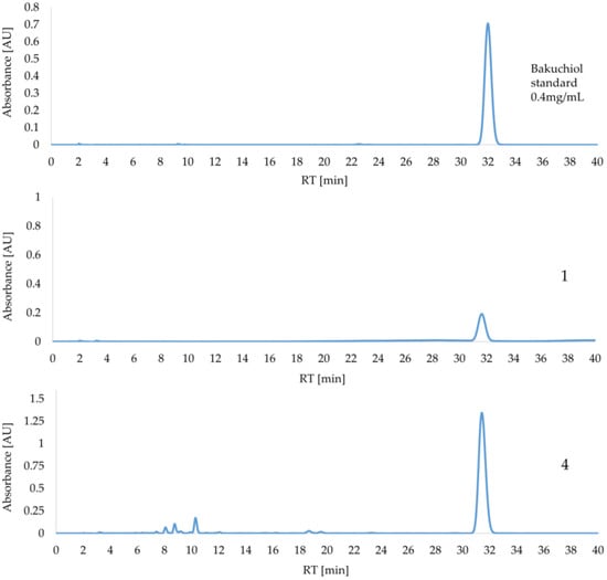 - Kurpet, K.; Chwatko, G. Development of a new chromatographic method for the determination of bakuchiol in cosmetic products. Sci. Rep. 2023, 13, 13893. [Google Scholar] [CrossRef] [PubMed]