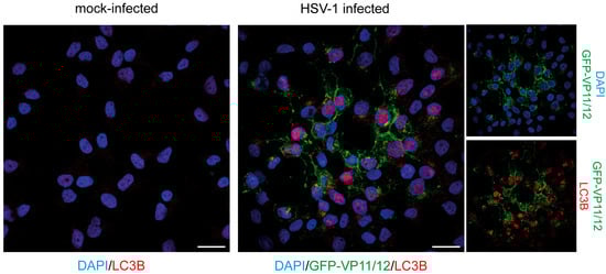 2.1. LC3B Staining Is Observed in the Replication Compartments of HSV-1-Infected HOG Cells by Immunofluorescence