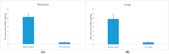Residual DNA analysis of (A) native organ and DCL pancreas; (B) native organ and DCL lung.