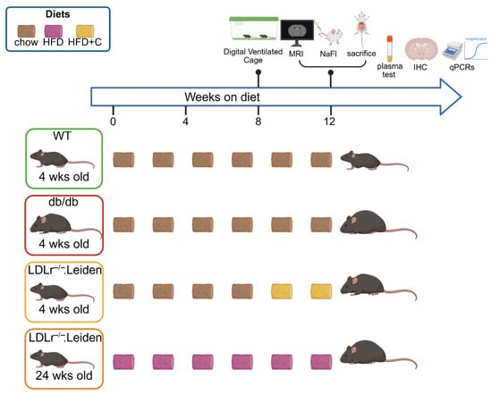- Seidel, F.; Morrison, M.C.; Arnoldussen, I.; Verweij, V.; Attema, J.; de Ruiter, C.; van Duyvenvoorde, W.; Snabel, J.; Geenen, B.; Franco, A.; et al. Obesity accelerates age-related memory deficits and alters white matter tract integrity in Ldlr-/-.Leiden mice. Brain Behav. Immun. Health 2025, 45, 100991. [Google Scholar] [CrossRef]
