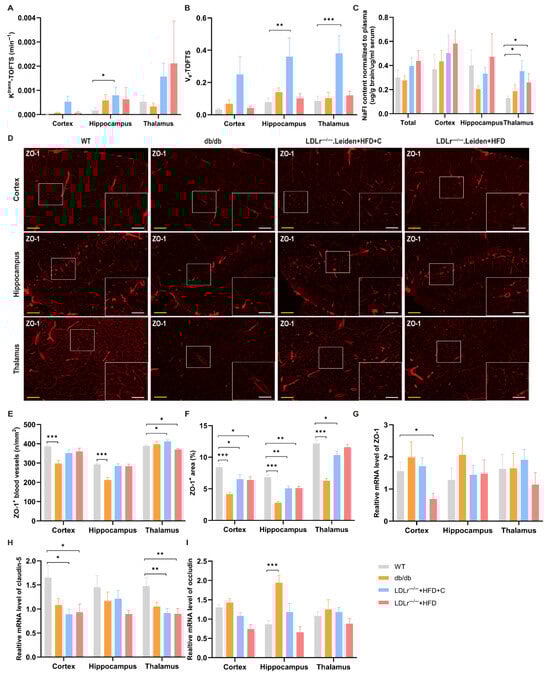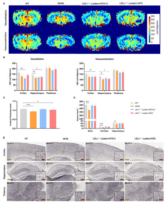 - Alshammari, M.A.; Alshehri, A.O.; Alqahtani, F.; Khan, M.R.; Bakhrebah, M.A.; Alasmari, F.; Alshammari, T.K.; Alsharari, S.D. Increased Permeability of the Blood-Brain Barrier in a Diabetic Mouse Model (Leprdb/db Mice). Int. J. Mol. Sci. 2024, 25, 7768. [Google Scholar] [CrossRef] [PubMed]