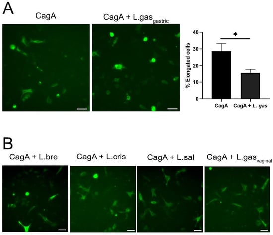 2.2. Lactobacillus Gasseri Suppress Elongation in CagA-Transfected Gastric Cells