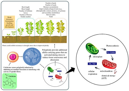 Demonstration of the potential role of colchicine in regulating the growth and development of leguminous crops. Reproduced with permission from [], CC-BY license, Copyright © 2023, the authors. Licensee MDPI, Basel, Switzerland.