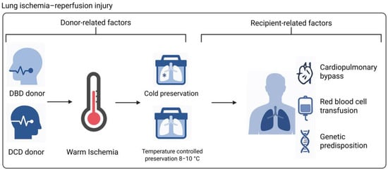 - Chacon-Alberty, L.; Fernandez, R.; Jindra, P.; King, M.; Rosas, I.; Hochman-Mendez, C.; Loor, G. Primary Graft Dysfunction in Lung Transplantation: A Review of Mechanisms and Future Applications. Transplantation 2023, 107, 1687–1697. [Google Scholar] [CrossRef] [PubMed]