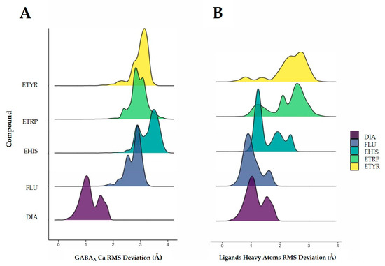 The free-energy landscape governing the binding/unbinding of the GABAA-derivatives complexes was evaluated with the well-tempered metadynamics technique (wt-MetaD); an advanced enhanced sampling technique capable of overcoming the timescale limitations inherent in classical molecular dynamics (MD) simulations [67]. The metadynamics simulations were performed using Desmond v2022-1 (Schrödinger LLC), with the post-analysis conducted via the Metadynamics Analysis Plugin in Maestro.
