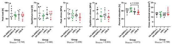 - Matsumoto, T.; Sato, Y.; Kobayashi, T.; Suzuki, K.; Kimura, A.; Soma, T.; Ito, E.; Kikuchi, T.; Kobayashi, S.; Harato, K.; et al. Adipose-derived stem cell sheets improve early biomechanical graft strength in rabbits after anterior cruciate ligament reconstruction. Am. J. Sports Med. 2021, 49, 3508–3518. [Google Scholar] [CrossRef] [PubMed]