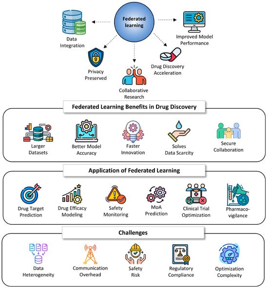 | Applications | Drug Target Identification | FL integrates genomic, proteomic, and clinical data across sources to identify and validate new drug targets |