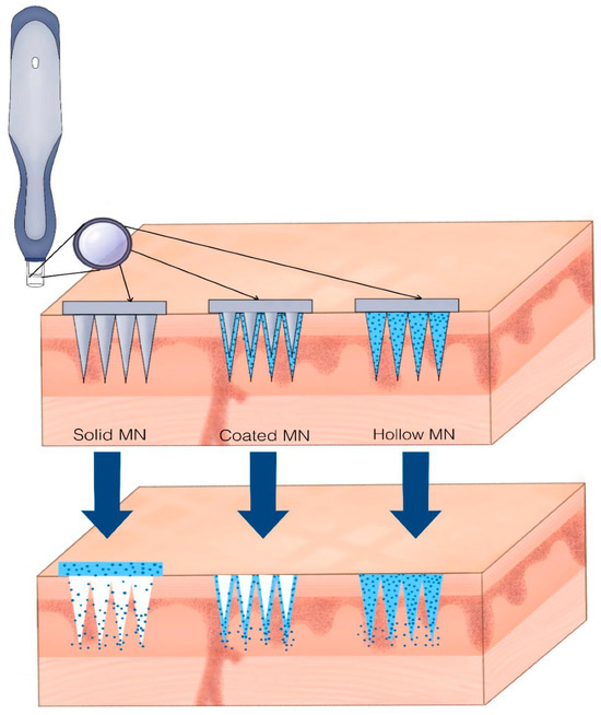- Kulkarni, D.; Damiri, F.; Rojekar, S.; Zehravi, M.; Ramproshad, S.; Dhoke, D.; Musale, S.; Mulani, A.A.; Modak, P.; Paradhi, R.; et al. Recent Advancements in Microneedle Technology for Multifaceted Biomedical Applications. Pharmaceutics 2022, 14, 1097. [Google Scholar] [CrossRef] [PubMed]