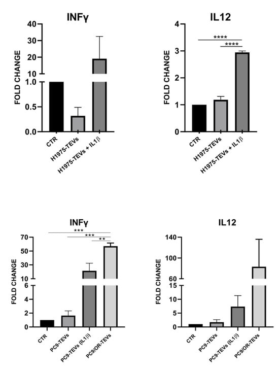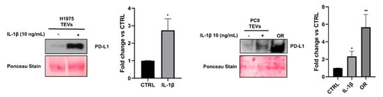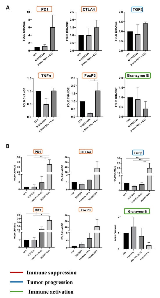 2.4. Effect of IL-1β on PD-L1 Levels in TEVs Isolated from NSCLC Cells and PCR Analysis of sEV-Dependent Modulation of Immune Genes in PBMCs