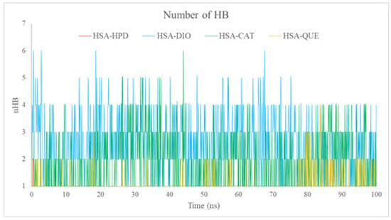 2.5.4. Analysis of the Number of Hydrogen Bonds (nHBs)