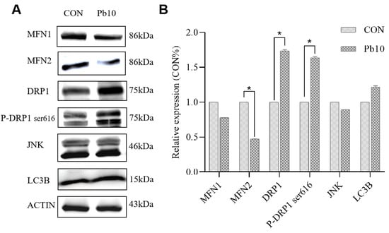 2.2. Effects of Lead Acetate on Mitochondrial Dynamics-Related Protein Expression