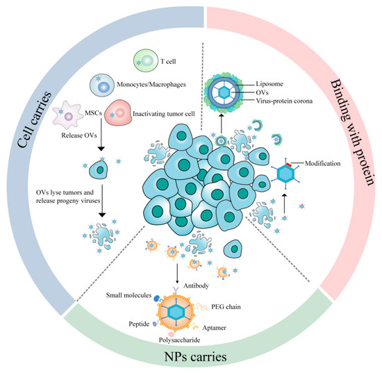- Reale, A.; Calistri, A.; Altomonte, J. Giving Oncolytic Viruses a Free Ride: Carrier Cells for Oncolytic Virotherapy. Pharmaceutics 2021, 13, 2192. [Google Scholar] [CrossRef]