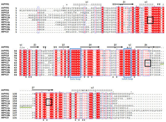 2.3. Conserved Motif, Protein Alignments, and 3D Topology Analysis of PYLs in Hop