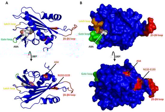 - Mosquna, A.; Peterson, F.C.; Park, S.Y.; Lozano-Juste, J.; Volkman, B.F.; Cutler, S.R. Potent and selective activation of abscisic acid receptors in vivo by mutational stabilization of their agonist-bound conformation. Proc. Natl. Acad. Sci. USA 2011, 108, 20838–20843. [Google Scholar] [CrossRef]