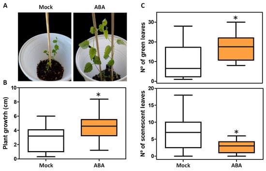 - Dias, M.C.; Correia, C.; Moutinho-Pereira, J.; Oliveira, H.; Santos, C. Study of the effects of foliar application of ABA during acclimatization. Plant Cell Tissue Organ Cult. 2014, 117, 213–224. [Google Scholar] [CrossRef]