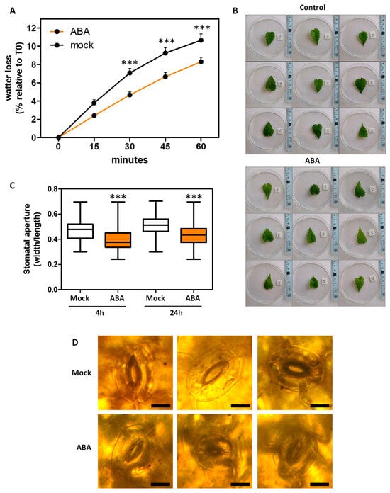 - Pizzio, G.A.; Mayordomo, C.; Illescas-Miranda, J.; Coego, A.; Bono, M.; Sanchez-Olvera, M.; Martin-Vasquez, C.; Samantara, K.; Merilo, E.; Forment, J.; et al. Basal ABA signaling balances transpiration and photosynthesis. Physiol. Plant. 2024, 176, e14494. [Google Scholar] [CrossRef]
