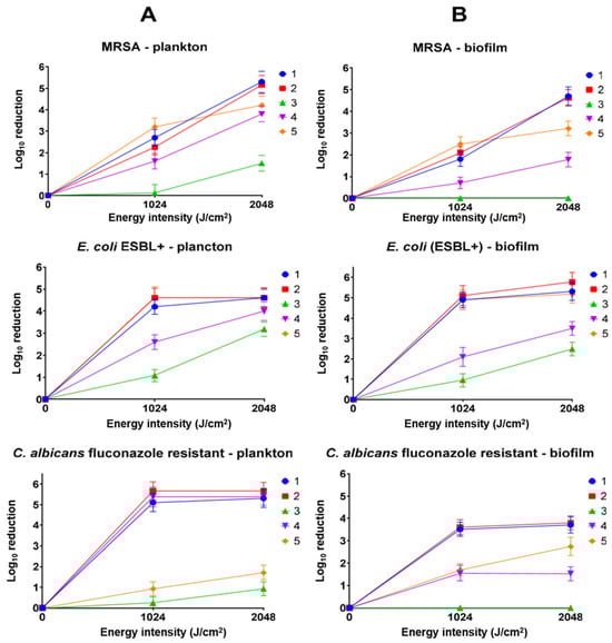 - Domínguez, A.B.; Ziental, D.; Dlugaszewska, J.; Sobotta, L.; Torres, T.; Rodríguez-Morgade, M.S. Multicationic Ruthenium Phthalocyanines as Photosensitizers for Photodynamic Inactivation of Multiresistant Microbes. Eur. J. Med. Chem. 2025, 285, 117214. [Google Scholar] [CrossRef] [PubMed]