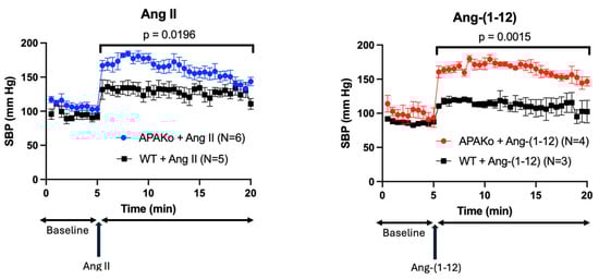 2.4. Effect of Acute Ang II and Ang-(1-12) Infusion on Systolic Blood Pressure in a Model of Global APA Deficiency