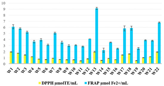 The antioxidant capacity of the 22 wild ales, as determined by DPPH and FRAP assays, exhibited significant variation across the samples and countries of origin (