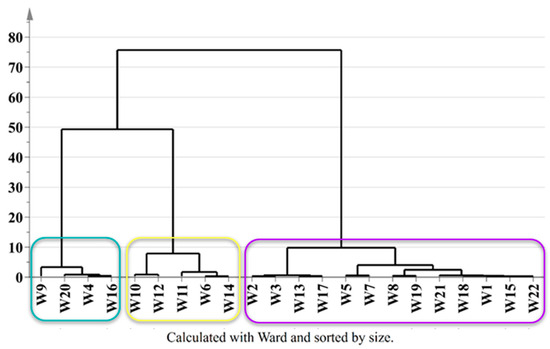 Hierarchical clustering analysis (HCA) was used to provide unsupervised insights into the data structure. By applying Ward’s linkage method, which minimizes within-cluster variance, HCA visualized natural, compact, and interpretable sample groupings based on the metabolomics data.