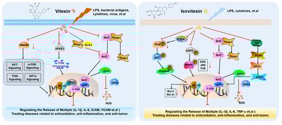 Typical pathways and target cases of vitexin and isovitexin in the treatment of diseases.