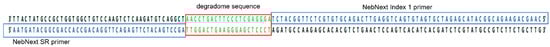 Sanger sequencing was performed on the fragments containing the integrated degradome library. The sequences obtained confirmed the correct binding of all adapters to the fragment obtained after restriction with the enzyme Mme I (Figure 4).