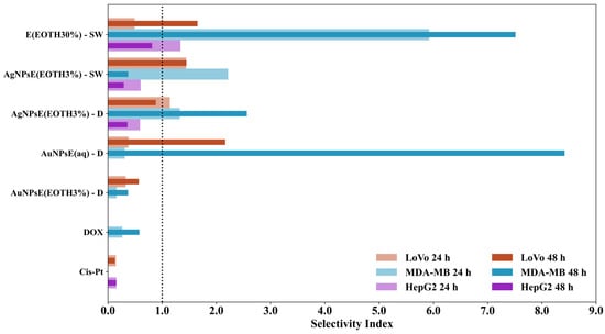 3.6.3. Comparative Analysis of IC50 and Selectivity Index at 24 h and 48 h